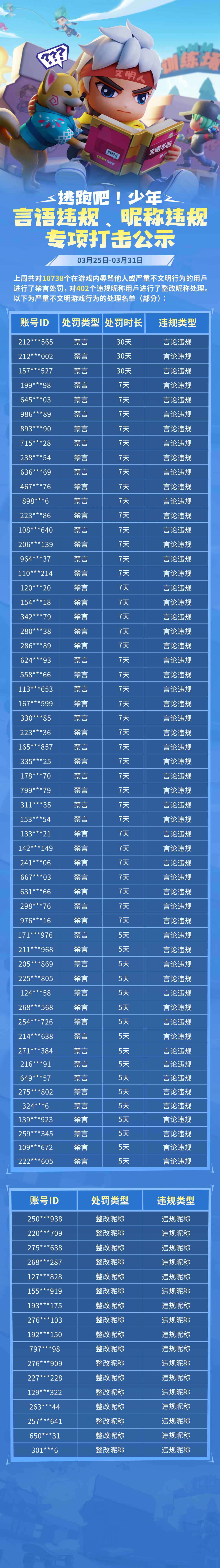 【言语违规&昵称违规处罚名单】
