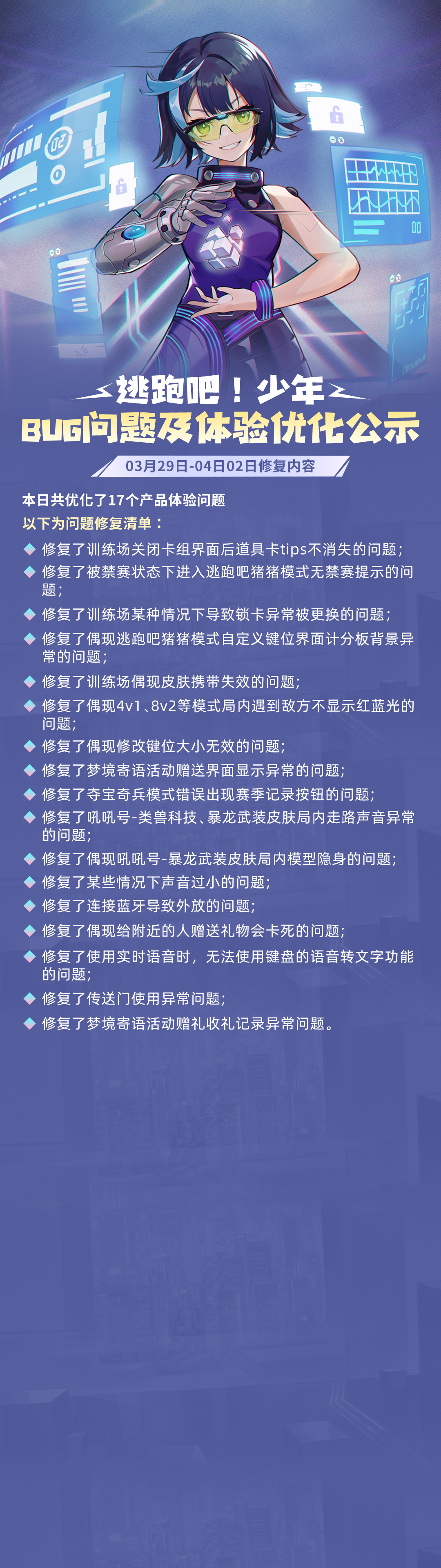 最近我们在外挂、违规言论&昵称和BUG问题上都做出了哪些优化措施呢,一起看看吧~
