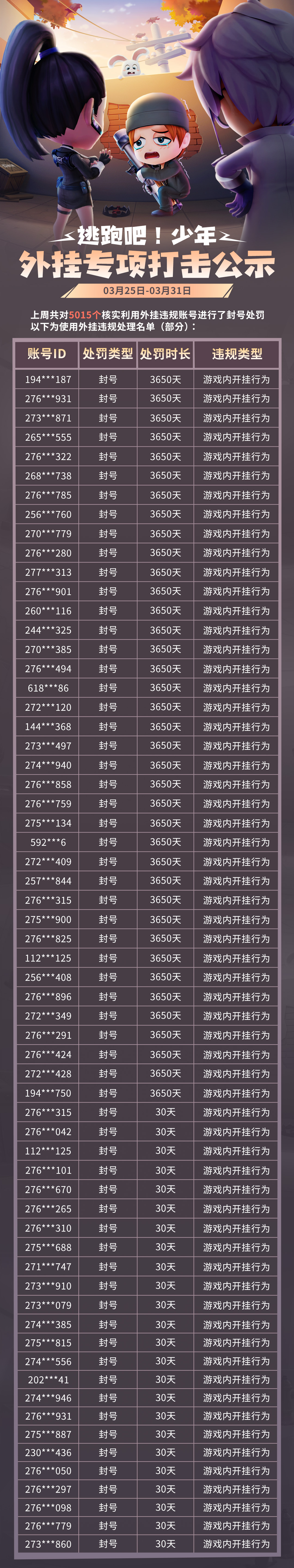 【外挂处罚名单】