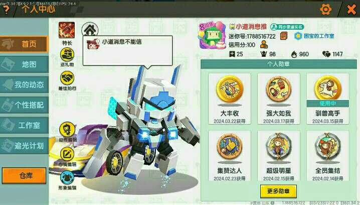 我已经玩迷你世界1400小时了。