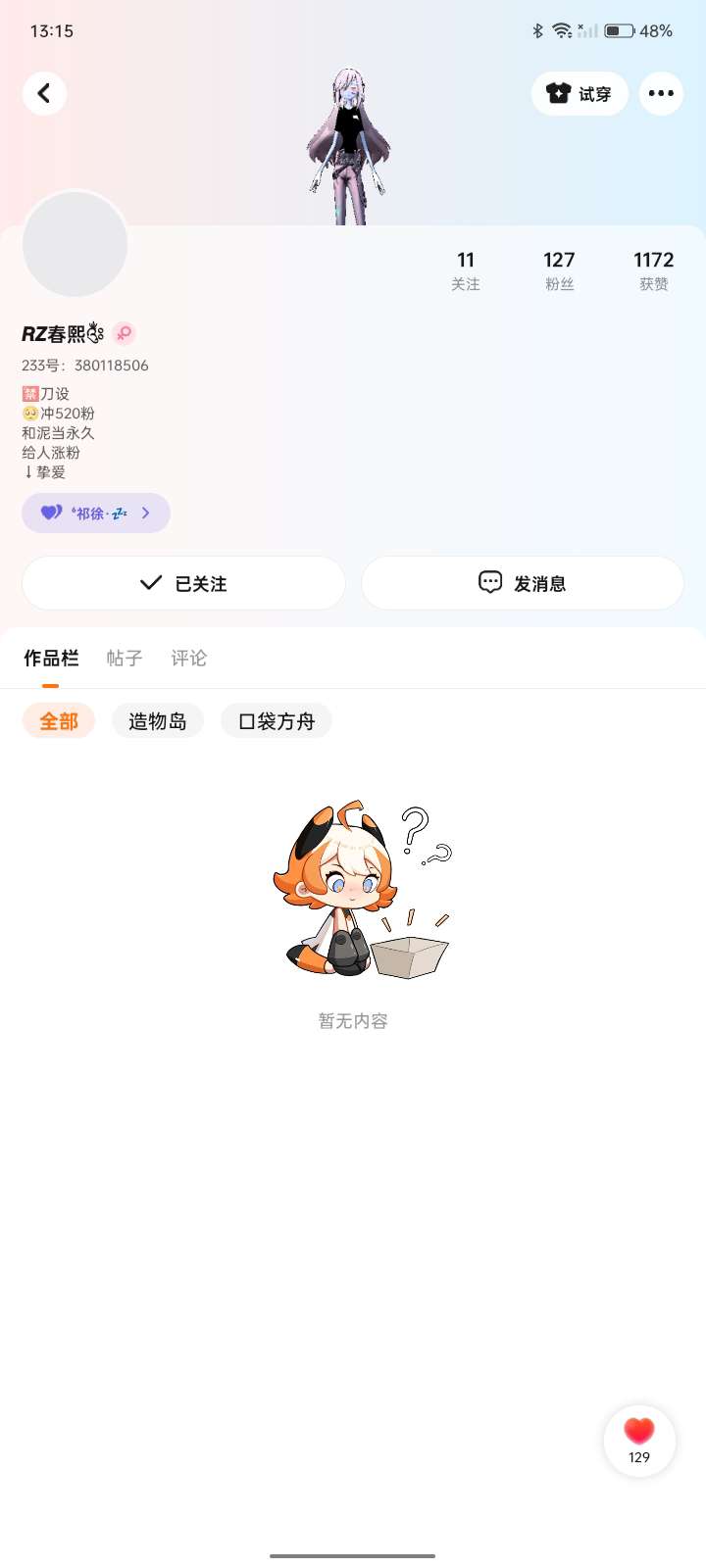 单推啦,她给我涨了一些粉,大家可以去关注一下她,233号:380118506