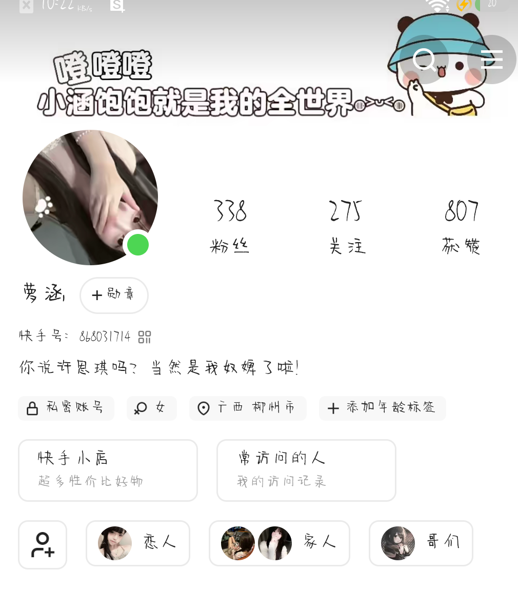 在快手上绑关系。快手:喵涵