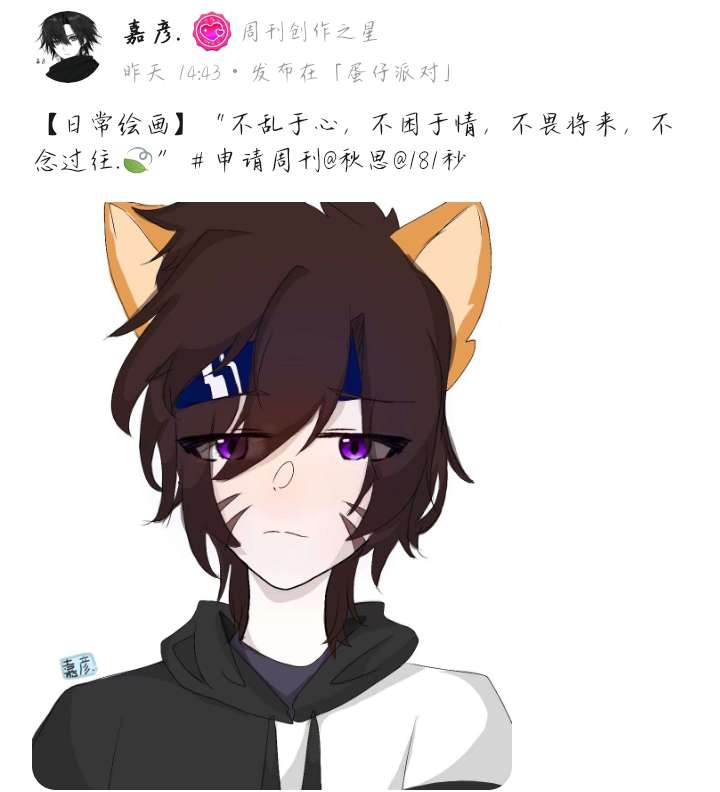 帖子点评:将动漫角色“擎风”画的栩栩如生,每一处细节拉满了,特别是眼神,给人一种懒惰却不失精神的样子