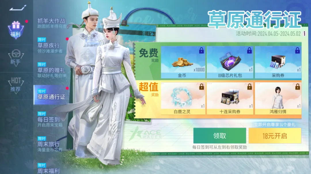 全新时装-鸿雁归情惊艳亮相,解锁草原通行证即可签到获取,除了免费领取的多重奖励,更有多款尊享超好礼等你,车手们别忘了来看看哦!