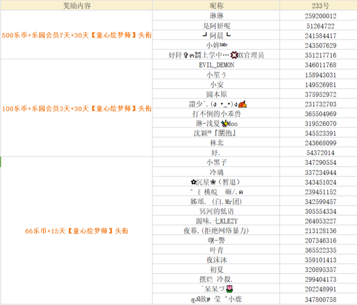 随机抽取15位绘梦师,送出 66乐币+15天【童心绘梦师】头衔