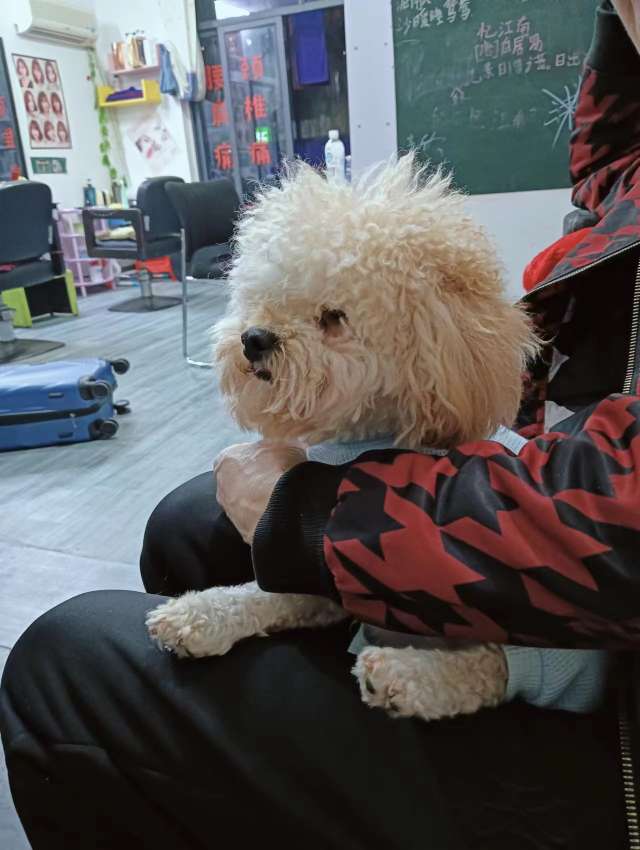 一坨躺在俺老爸怀里的狗