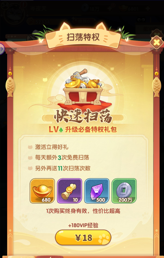 【快速升级】 进行游戏后,完成前期的一些任务后可以快速升级但是会被有写等级会被卡主,这里呢给各位主公介绍一下如何快速升级,主要的升级途径呢主要就是: 1:推图 2:通天塔 3:挂机收益 4:一键扫荡 但是一般做完这些任务会卡在30级左右,这边推荐先推图,然后去刷通天塔,挂机收益和一键扫荡是根据您的推图进度来计算经验的,放在最后收益最高,如果主公还不满足这个等级的话,可以选择去开通扫荡特权,可以额外获得许多扫荡次数,让主公您和其他玩家拉开不小的等级差距