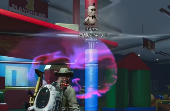 从通风管道出来后,房间的右侧会有一个和管道同色调的红色大门,使用门卡将其打开,径直向里面走会穿过一个类似空间隧道的地方,来到一间巨大的玩具屋,和中间的小丑玩具互动开启派对,为愿望先生的能量区域充能达到100即可完成隐藏关卡,而愿望先生也有几率出现在关卡奖励当中,如果没有的话,超越者们可以多尝试几次或切换难度。