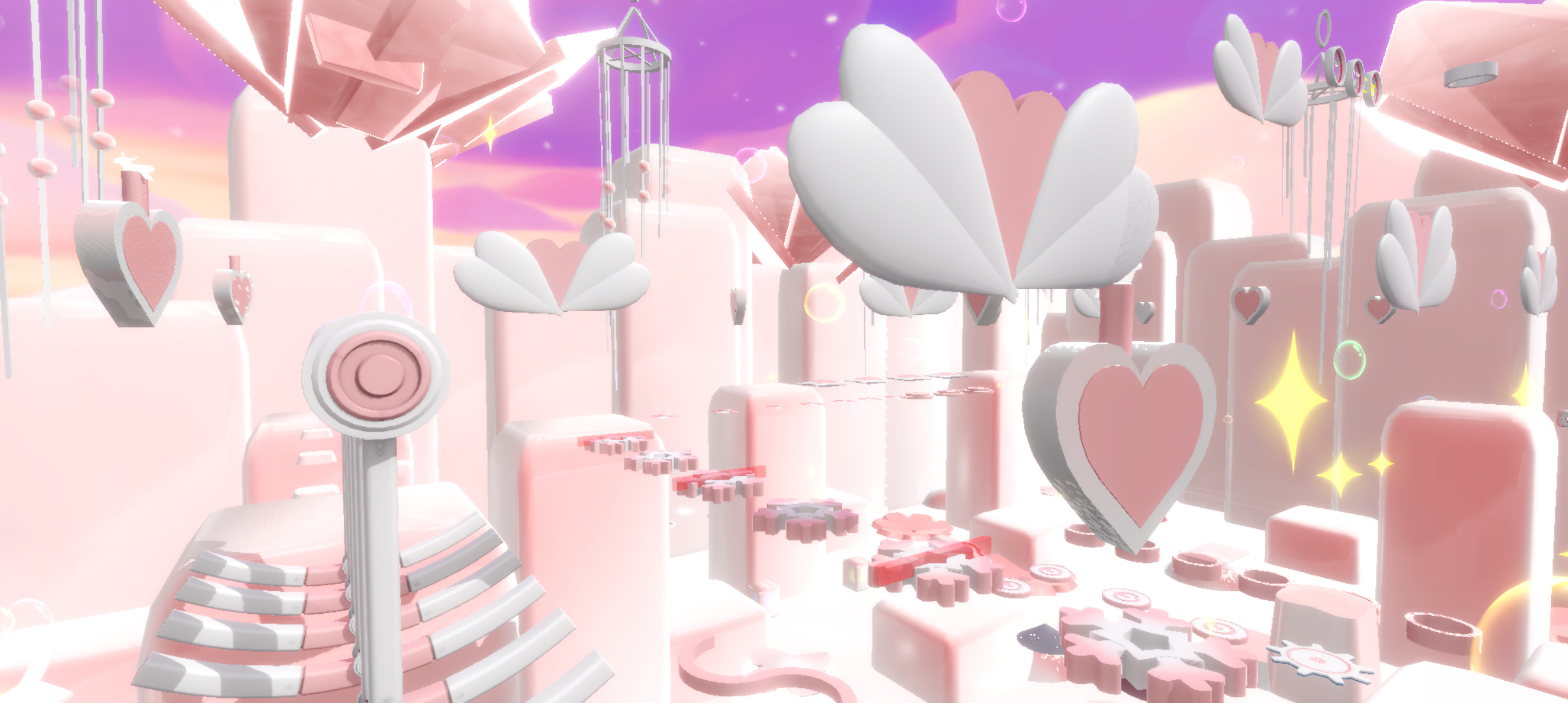 这里的关卡整体都是白色和粉色的