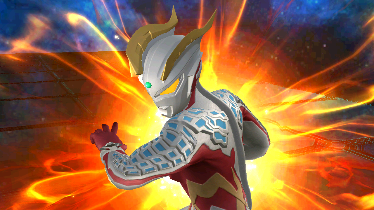 【加尔奈特巴斯塔光线】结合戴拿的加尔奈特轰炸和高斯的内巴斯特光线名字的强大光线技,敲击位于左手腕的终极手镯后,将能量聚集在右手发出火焰般的红光,从向前伸出的拳头发射出的超高温破坏光线,光线的形态周围会环绕上火焰一般的光圈。