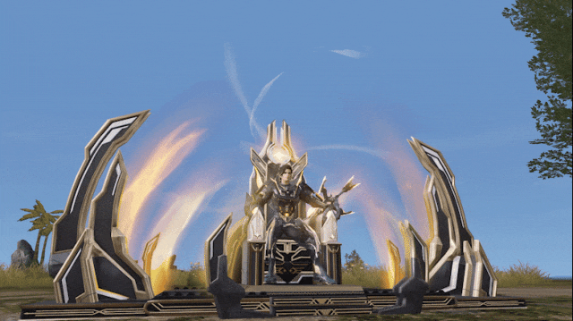 免费送你一套散发着金光的【陈设:神兵王座】,机甲风对称式设计彰显王者气质,可在出生岛使用分分钟登基称王,直接拿捏! 偷偷告诉大家,把大剑插到王座上更霸气哦~