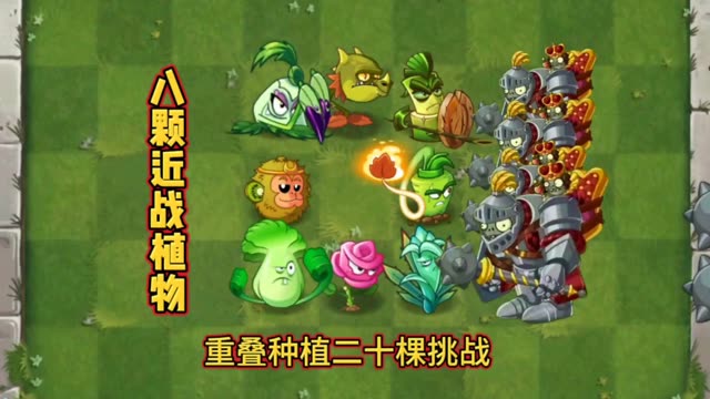 这是《植物大战僵尸2》的趣味对战内容,展示了多组近战植物与贝壳僵尸的对战,部分近战植物在对战中不敌贝壳僵尸,也体现出近战植物爆发高的特点。