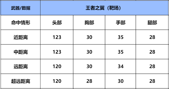 经过伤害测试我们可以看到,王者之武的伤害略逊于王者之翼,那是因为AK系列和M4系列的本质区别在这里,王翼的头部伤害要比王武高很多,其它伤害相差的并不是太多。在实战中命中其它部位仅需多点一枪即可。