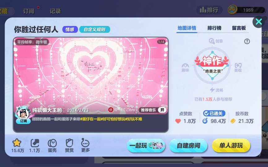 椰吻推荐语❣️好久没有找到过又好看又好玩的自定义规则观赏长跑酷了🐣真的可以称是神作❗