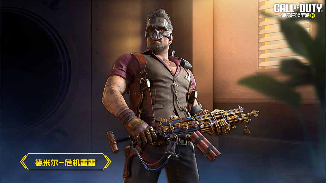 这次,德米尔-危机重重头戴面具,时刻准备好深入险地!他身着红色衬衫和马甲,展现出自己健硕的肌肉,他的左手是一个金色的金属义肢,仿佛拥有无穷的力量和破坏力!
