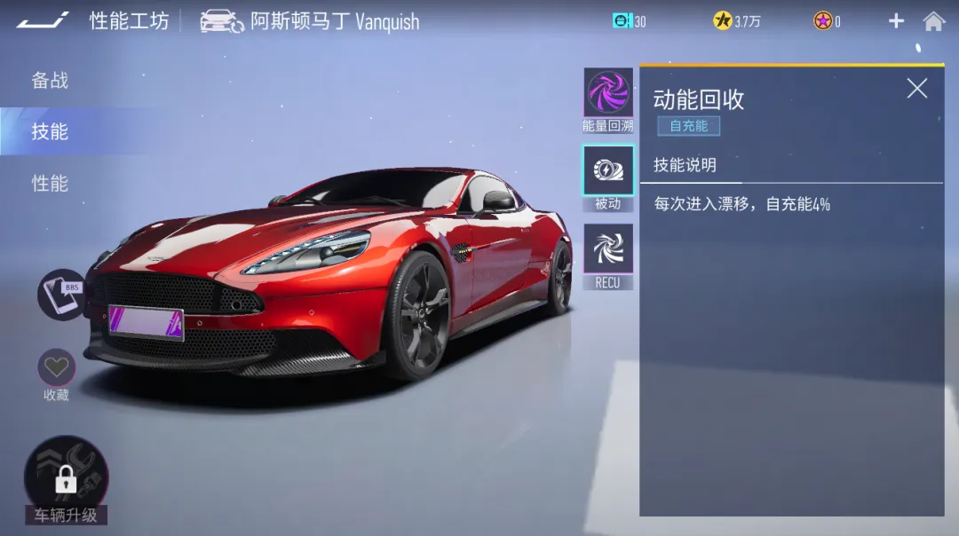 被动特性-动能回收:每次进入漂移,自充能4%。