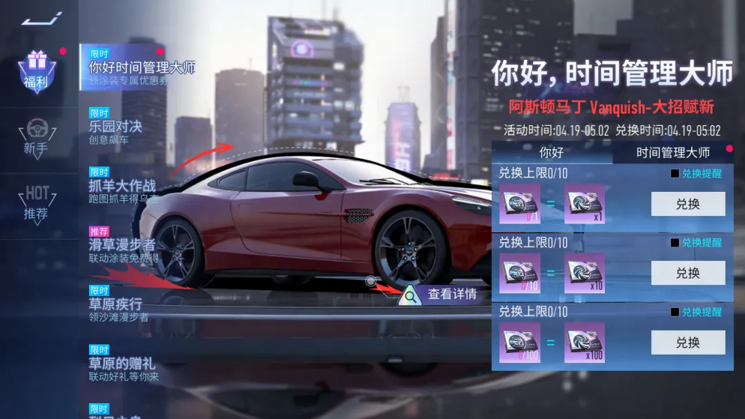为了让全体车手都能第一时间体验“新车”,感受能量回溯的赛场乐趣,焕新后的阿斯顿马丁 Vanquish将直接继承车手们目前该车辆的等级。而在4月19日,我们也准备了包含海量养成道具与试驾卡奖励在内的专属福利活动,车手们所持有的“未来位面”零件也可以1:1兑换为“能量回溯”零件(上限兑换1110枚),养成轻松又福利多多~