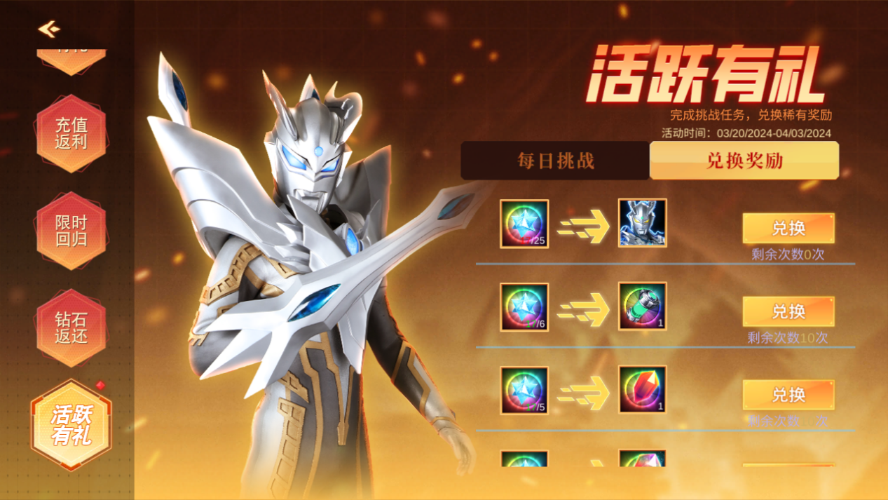 活动期间,参与游戏内各活动玩法可得辉光晶,消耗辉光晶可以兑换包括赛罗动态头像在内的多重福利道具