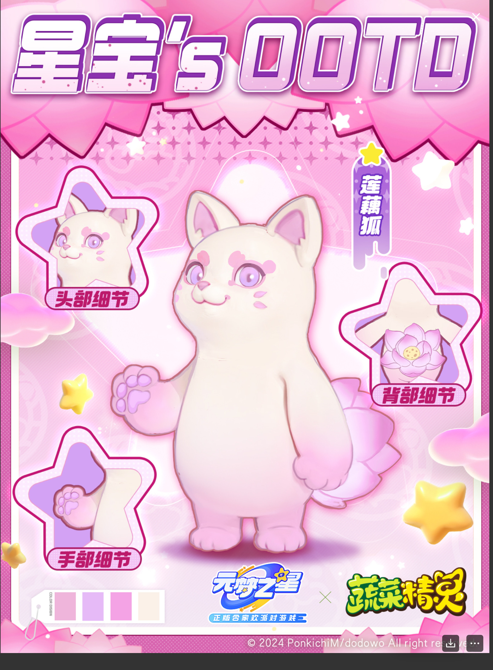 原来是莲藕狐趴在草丛睡着了——一个粉嫩嫩的蔬菜精灵,脸颊上有花瓣点缀,尾巴像一朵盛开的莲花,这个呀,就是莲藕狐的幸运标志🍀