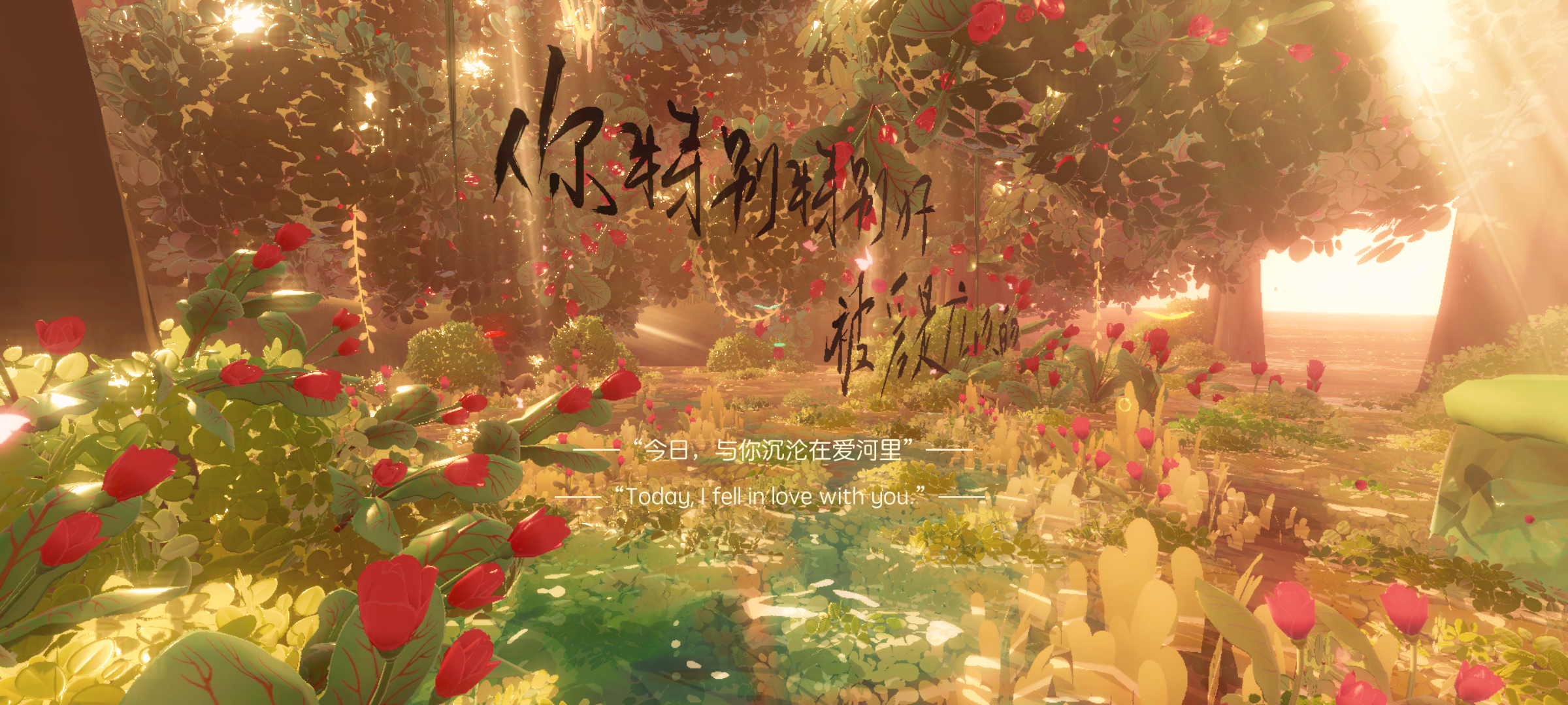 “今日,与你沉沦在爱河里” Today I sink in love with you