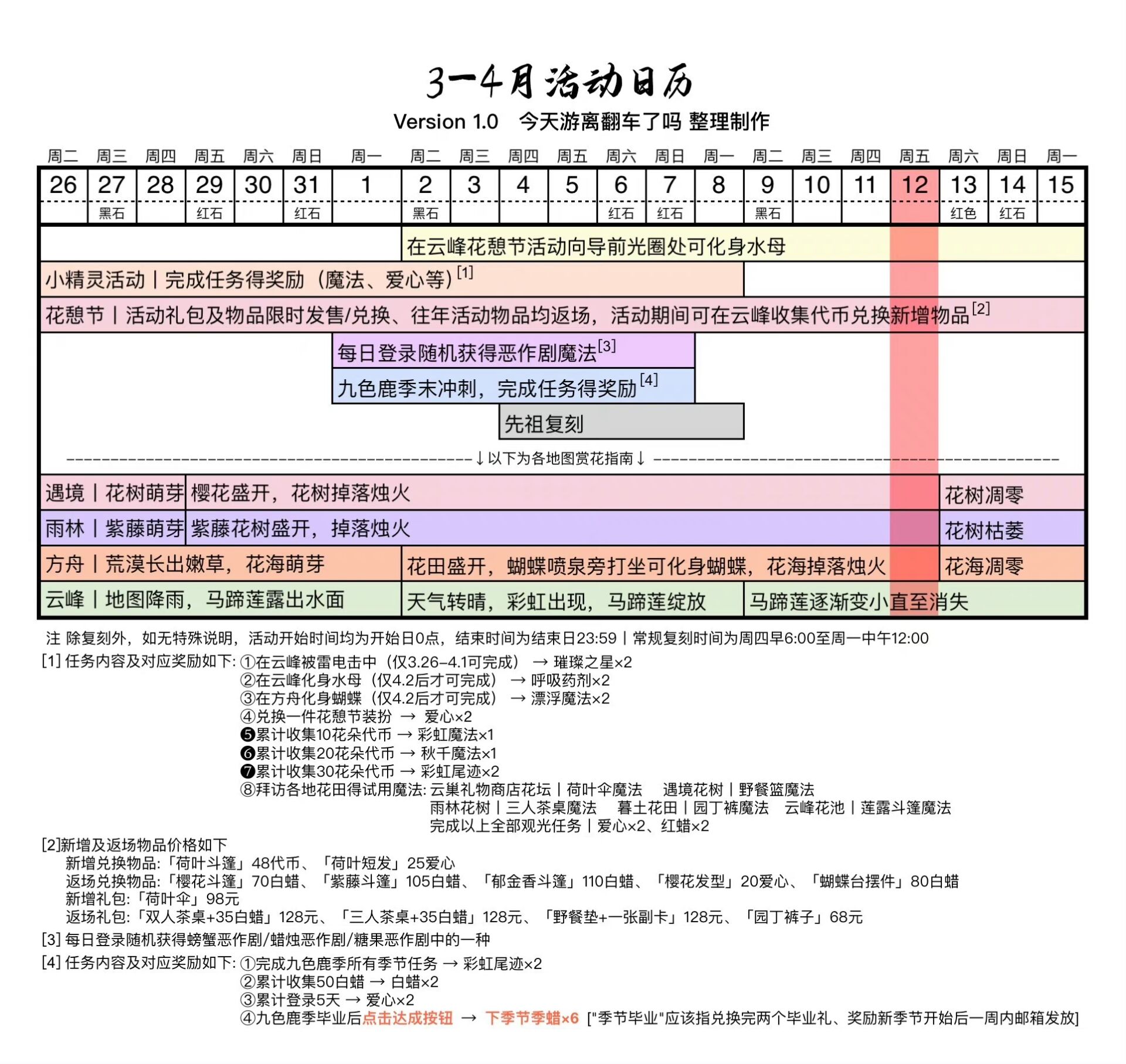 每日免费魔法[遇境商船/云巢魔法商店]: (每周五)大只佬、小不点 𝟮.花憩节活动接近尾声,记得去换物品