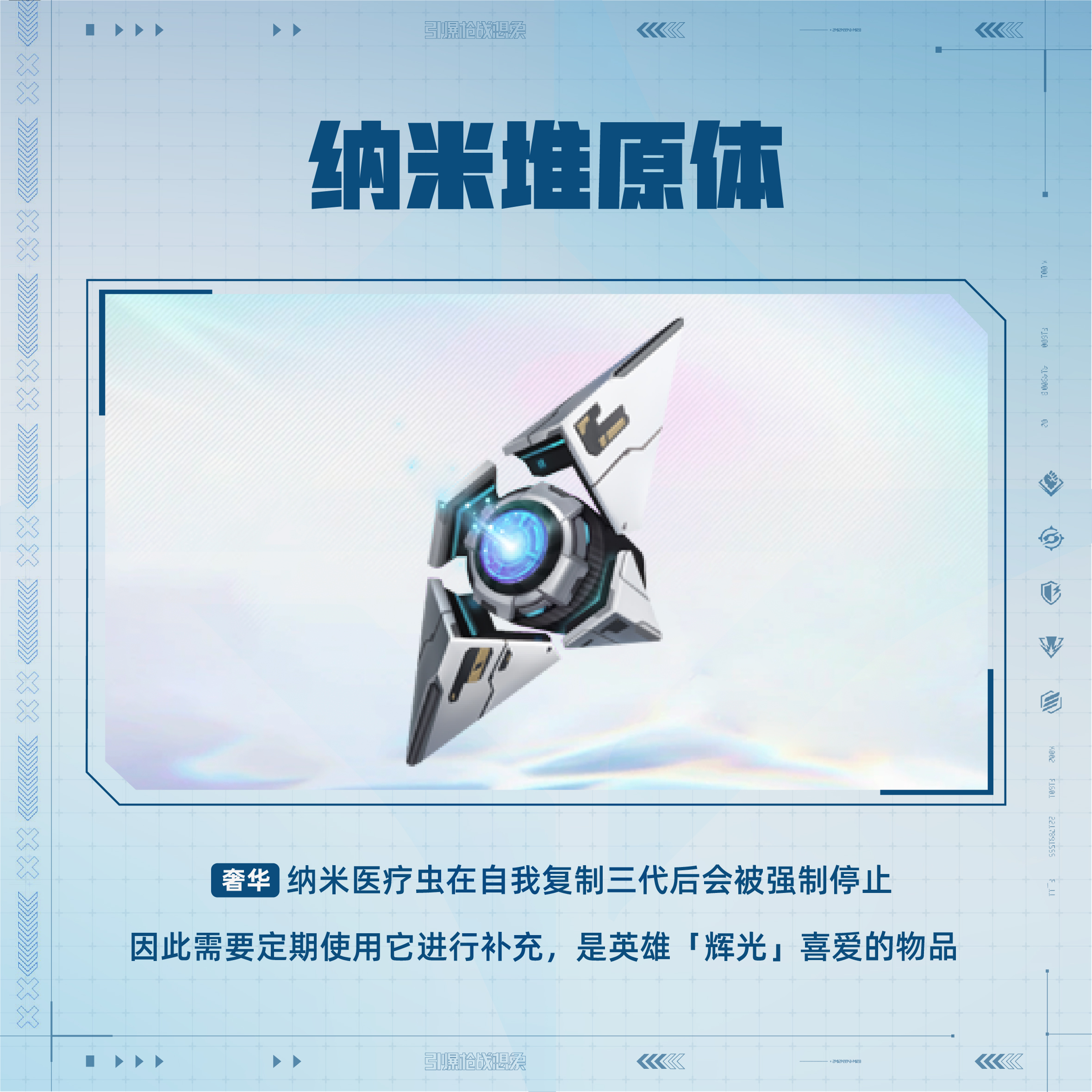 辉光是极星守卫的一员,她操控的纳米虫群拥有强大的医疗能力,甚至能在一定条件下复活同伴。