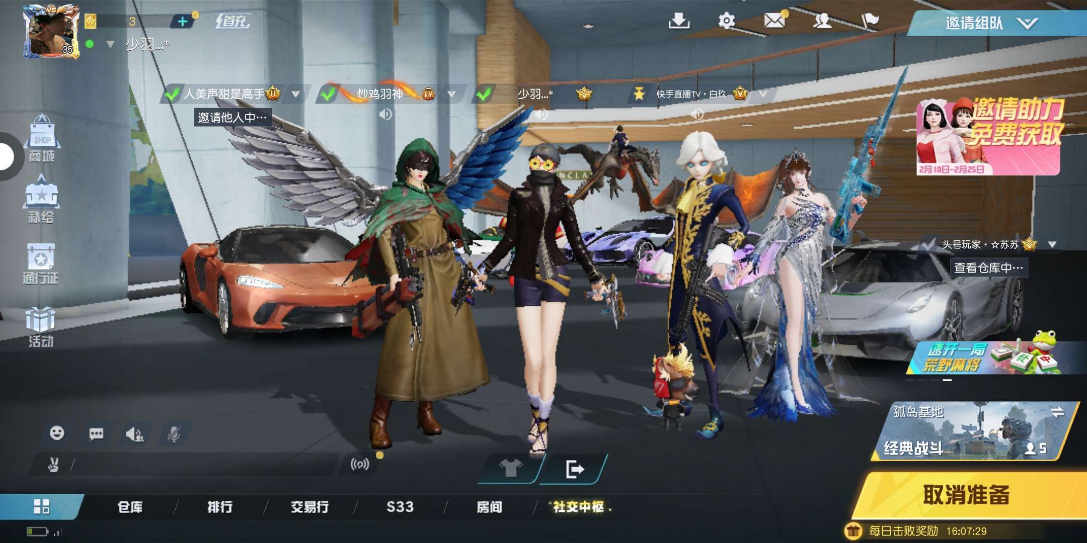 老六狗分队集结,谁想苟分吃鸡上大分加我,顺便把你们的荒野行动ID发过来,我好去加你们
