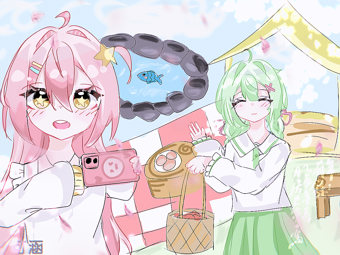 【欢乐野炊】和我一起来野炊吧!(画的是小粉和小绿的拟人形象)#绘画组