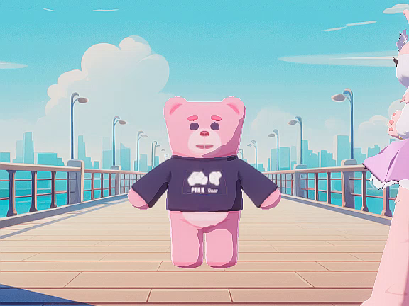 粉红小熊与粉红小狐狸。
