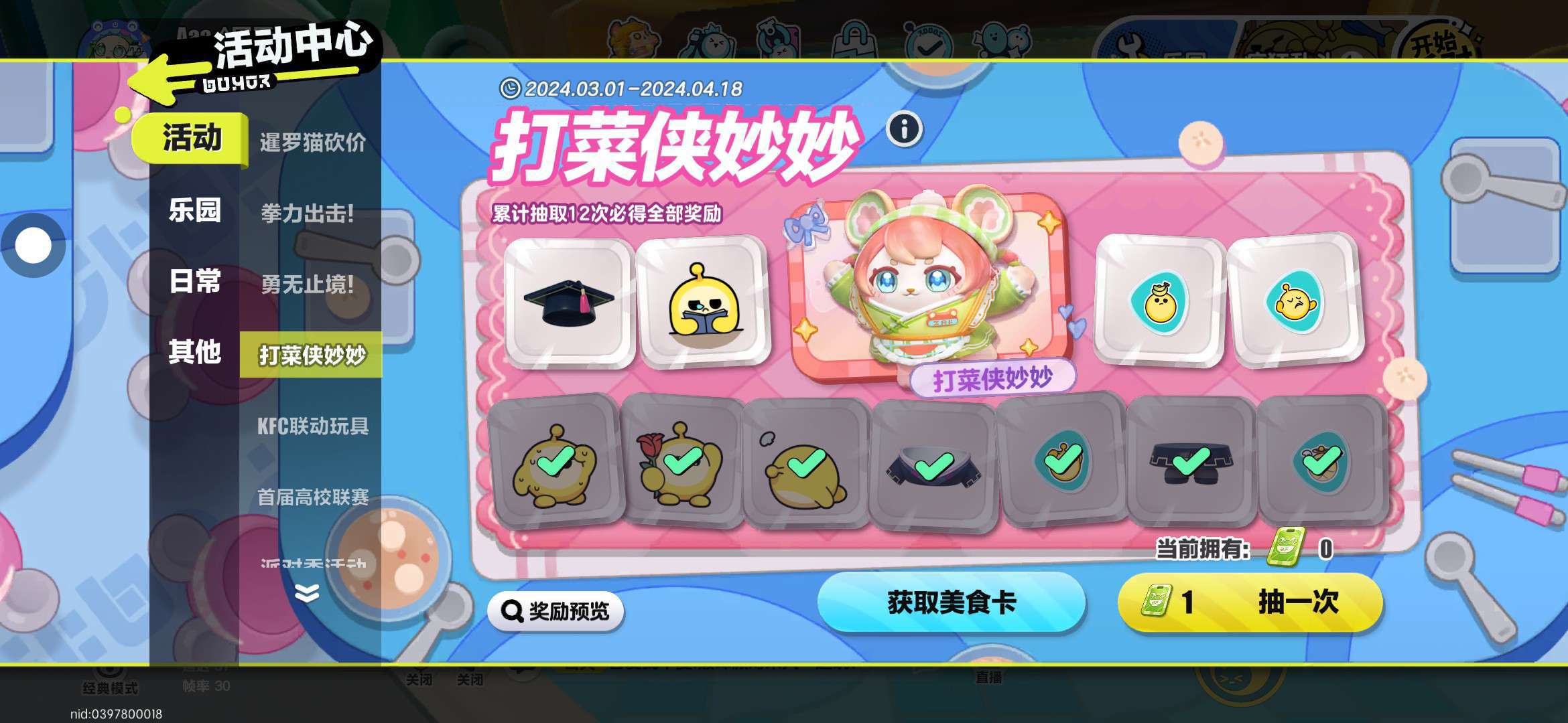 ????下面一排全抽完了,上面一排一次没抽到过