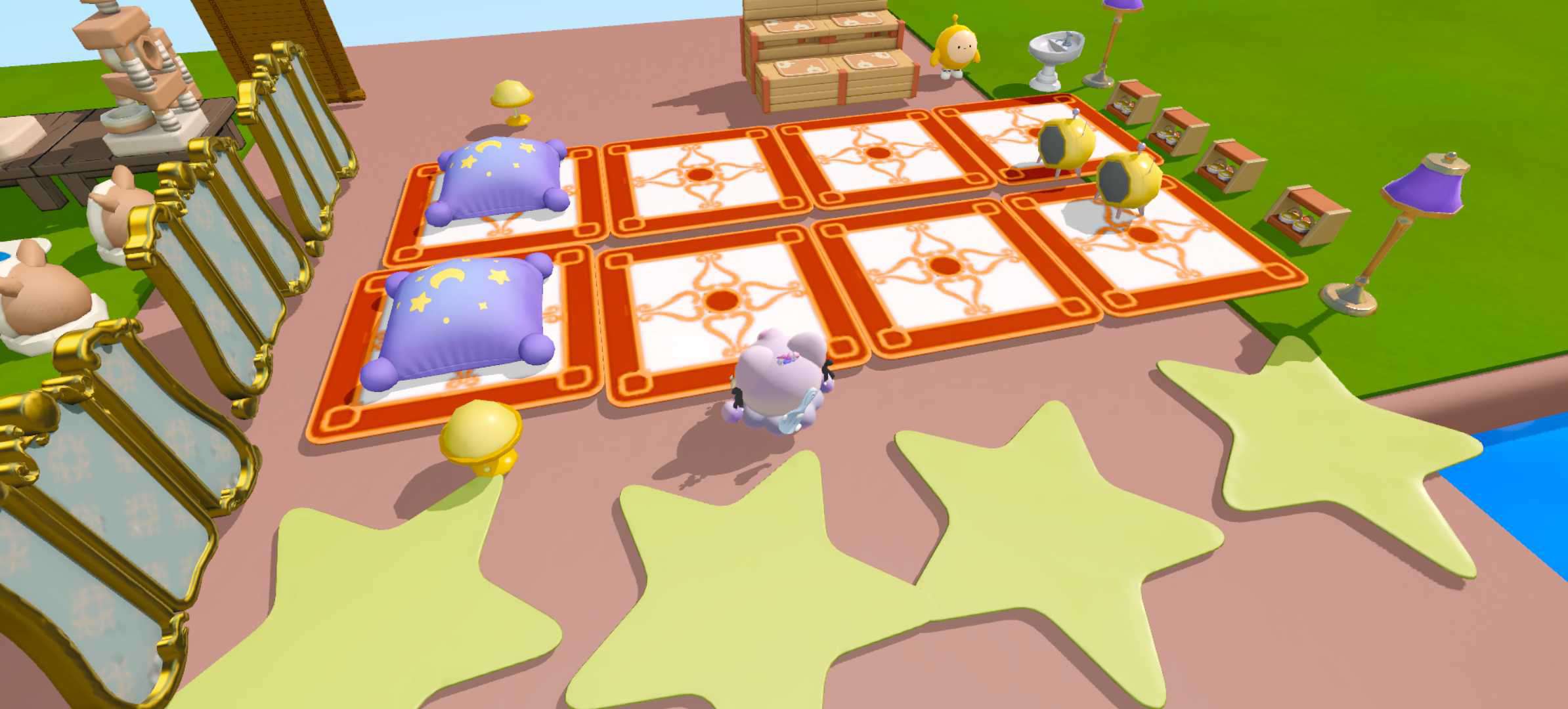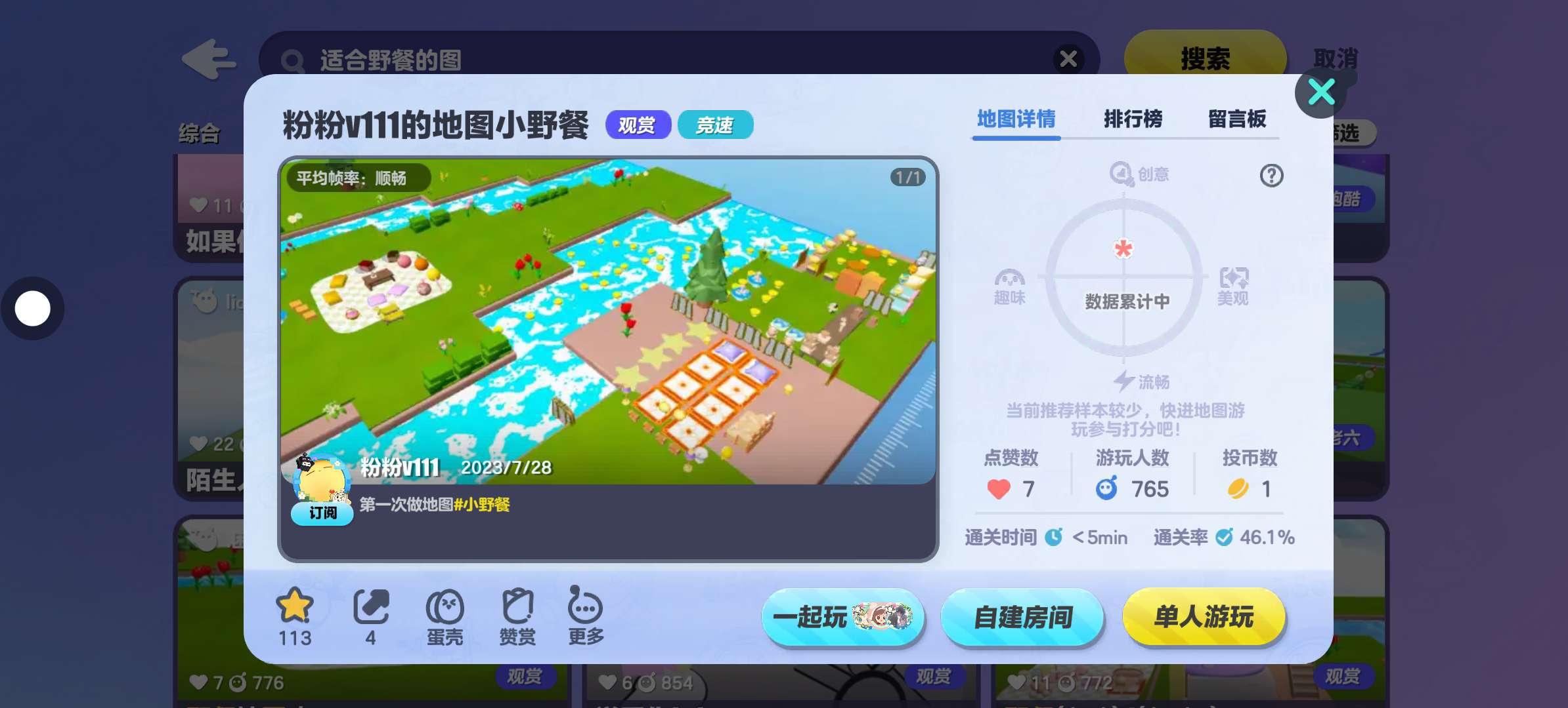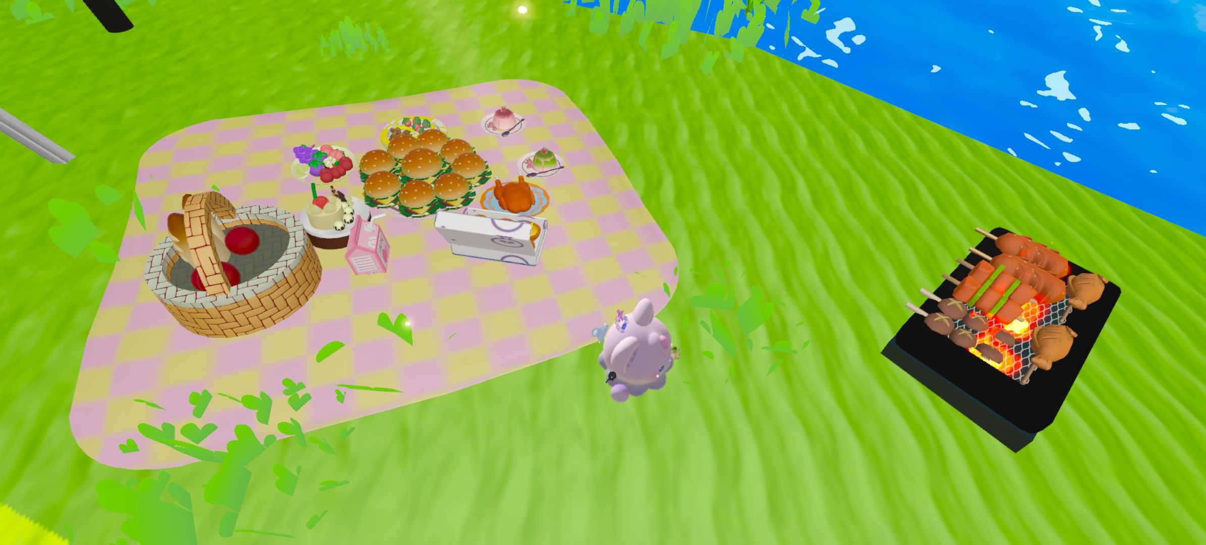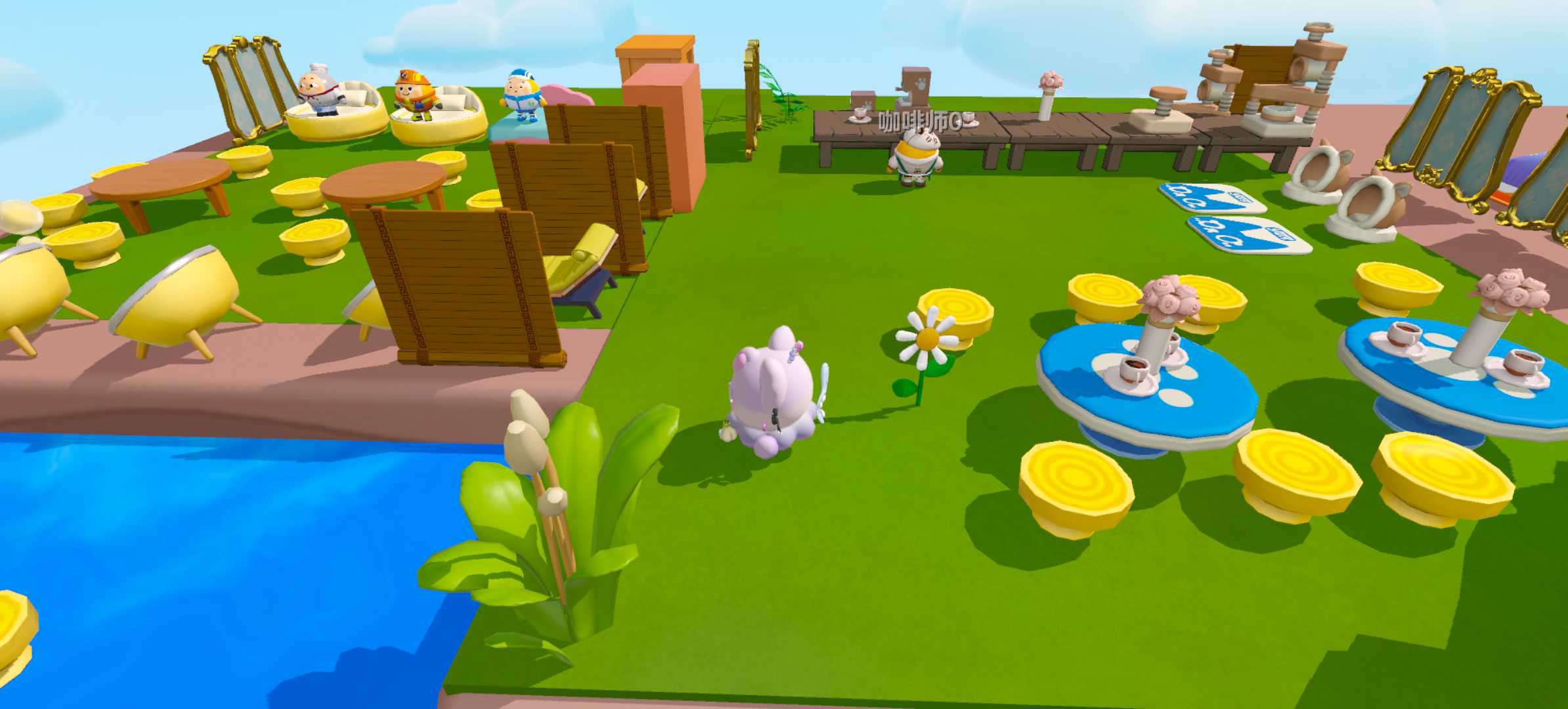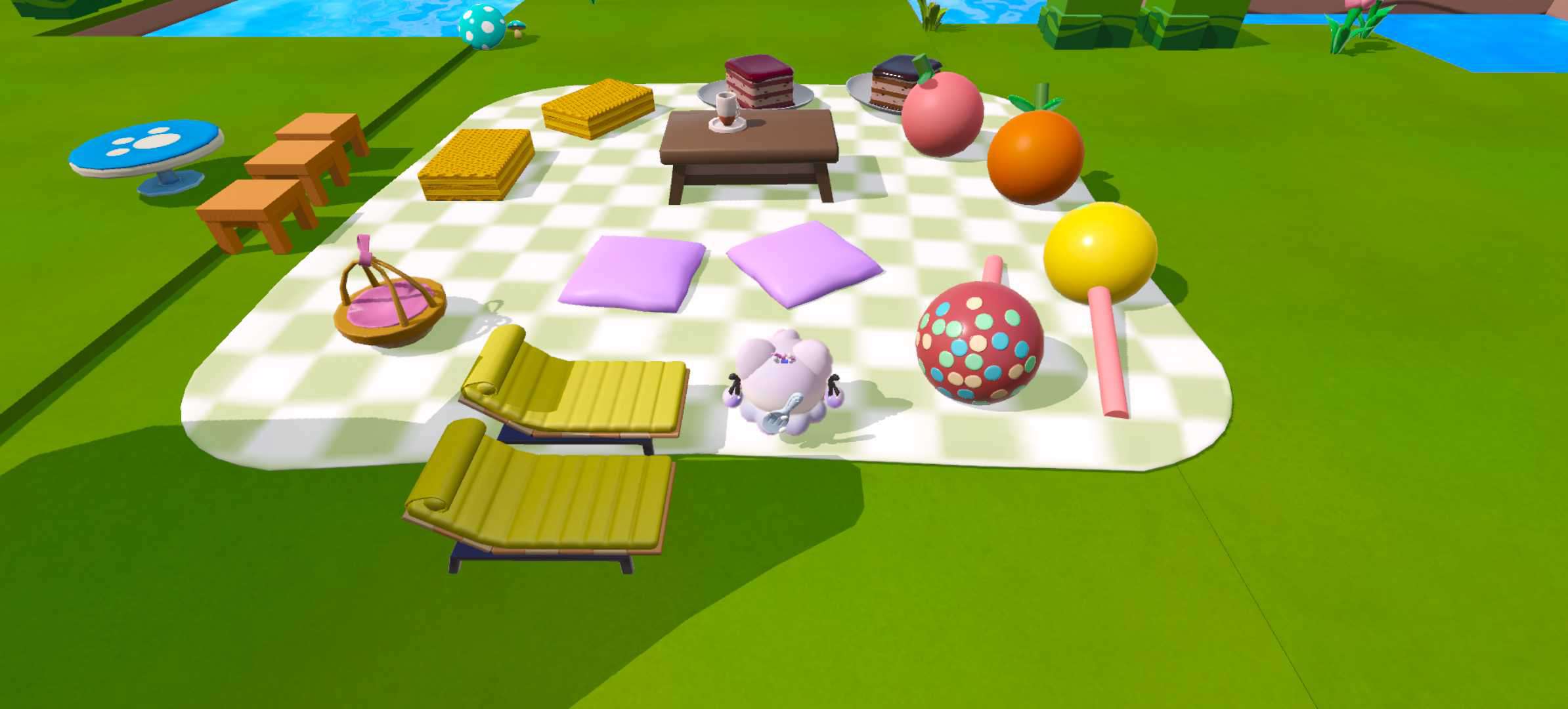 这张图就类似于夏天吧!虽然它的游玩人数很少,但我依然觉得它非常适合野餐,这张地图很小,但各种的野餐设备样样齐全,你可以坐在坐垫上吃小蛋糕、可以在垫子上玩游戏,玩累了还可以躺在躺椅上休息,这可真是太美好啦~