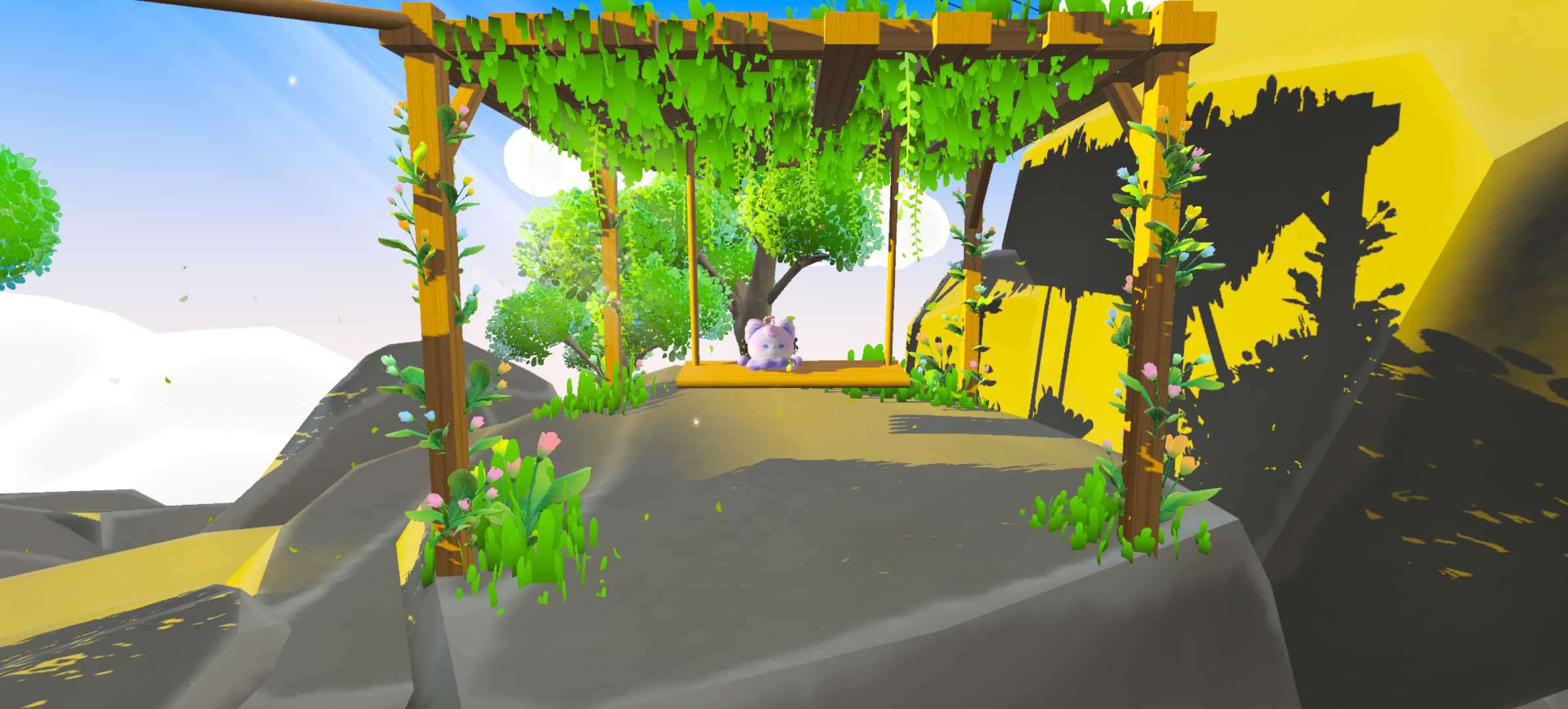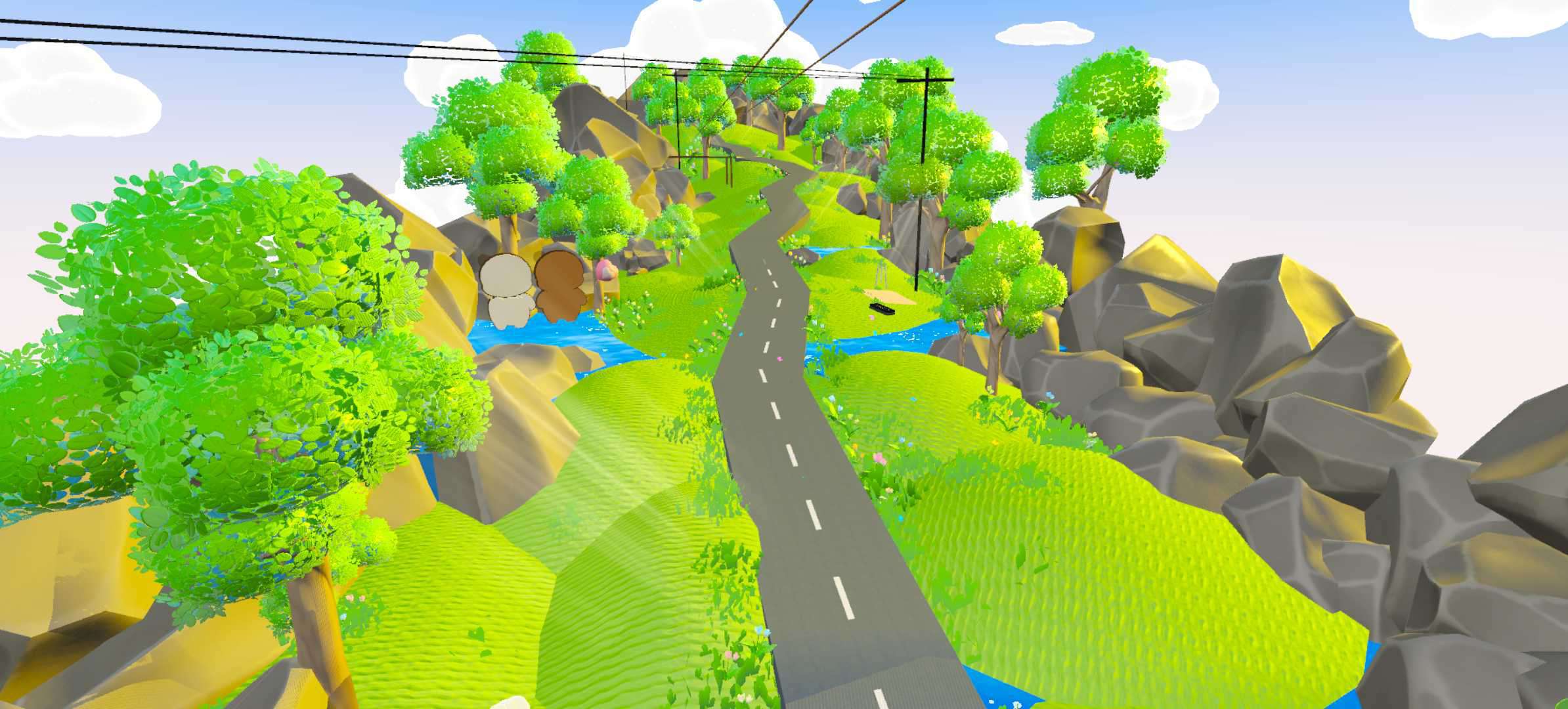 这一张图很有春天的气息,弯弯曲曲的小路,有两只可爱的小熊,有爱心打卡点,这张图的小路很长,如果你不想自己跑的话,中途会有缆车,还有泡泡可以带着你上山,山顶上有秋千,可以带着你的蛋搭子一起去坐,小路的中途还有野餐点,真的特别适合野餐。