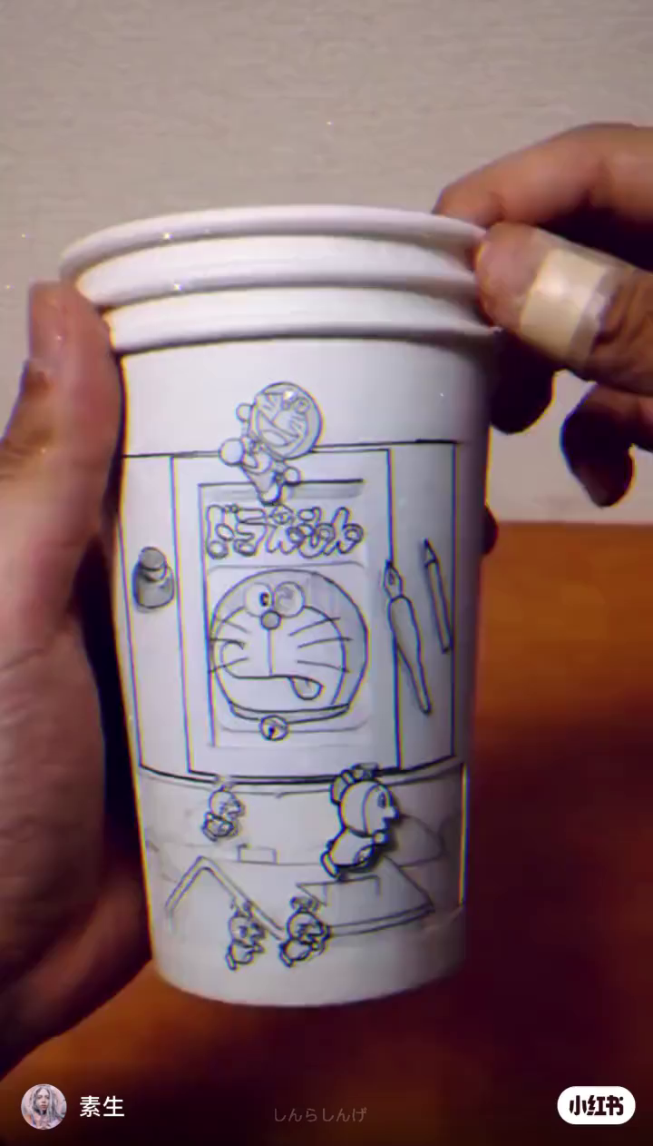 小红书:3个纸杯做哆啦A梦,下期发美食。