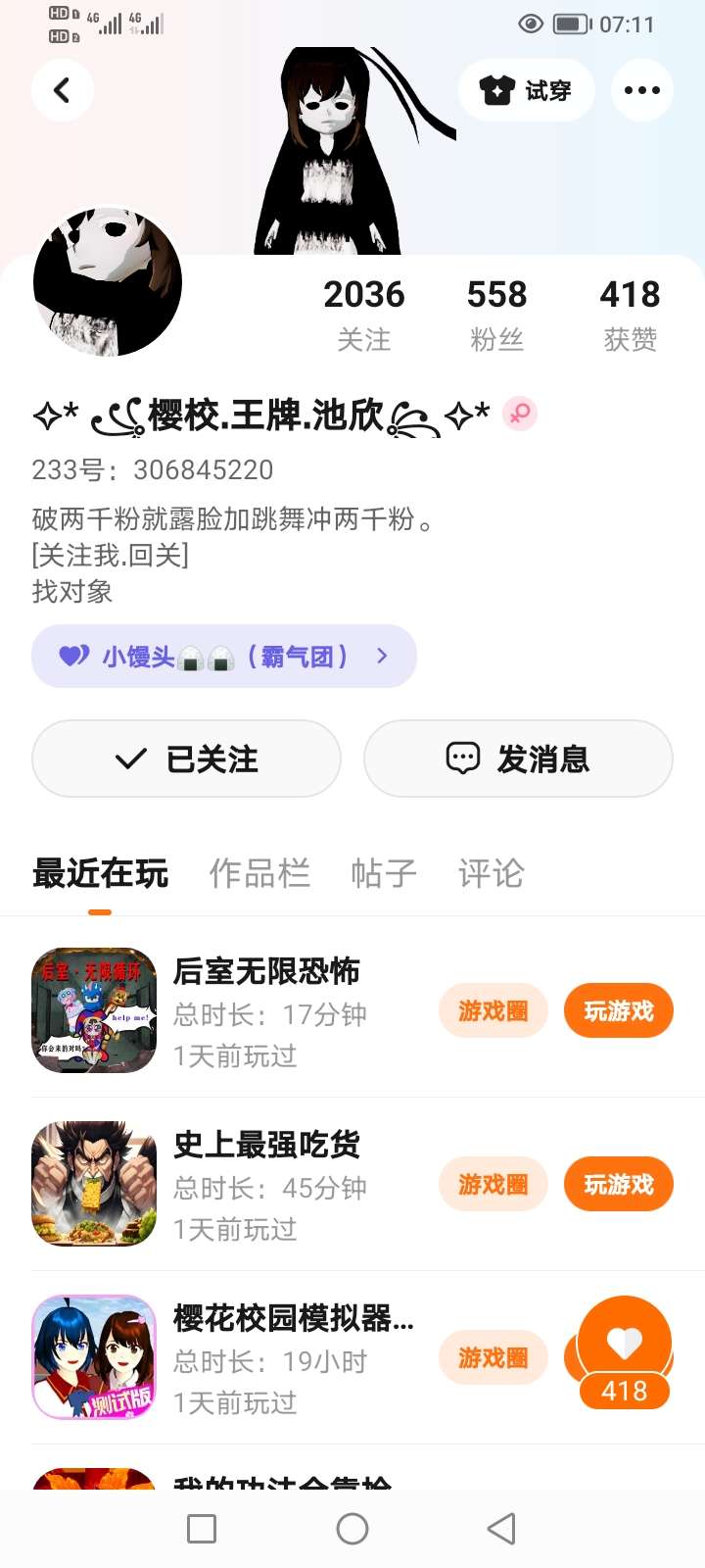 作者推荐游戏,欢迎大家参观🎉,这是俺的小号