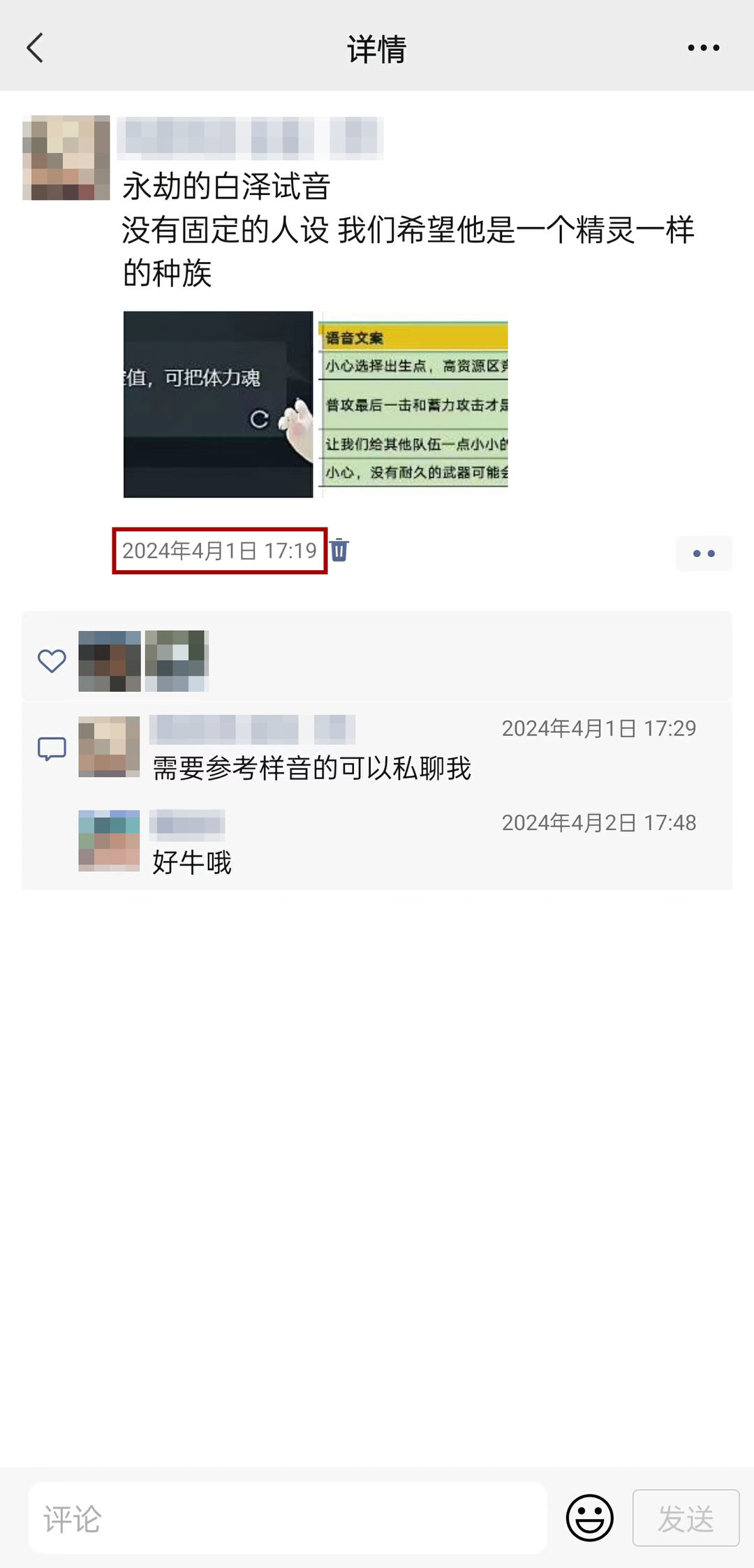 4月1日10点开服收到大家的反馈下午17点多我们就开始重新招募配音了