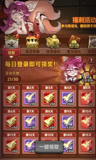 3.福利领取:将福利界面能领取的奖励全部领取即可