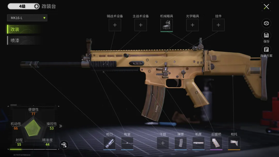 首先为大家介绍第一把武器MK16-L,下面是MK16-L的裸枪面板: