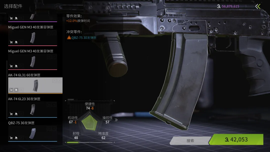弹夹选择AK-74 6L31 60发弹匣,它的大容量能为我们提供较高的容错率,且副作用不明显。