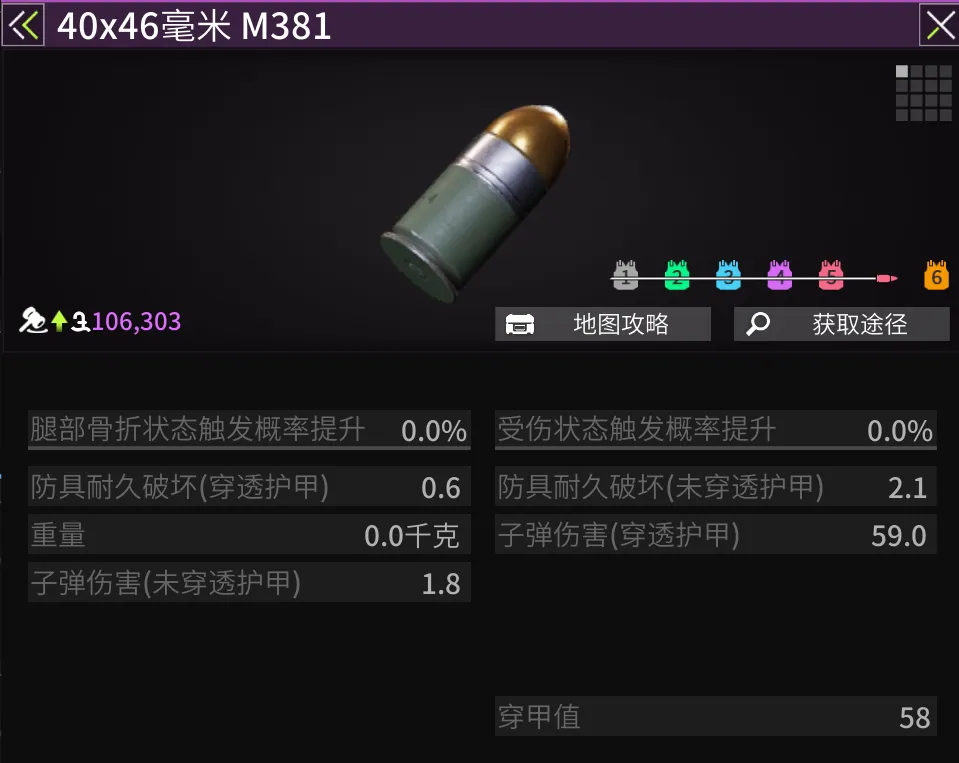 经实战测试,在炮弹落点与敌人基本接触的时候,造成的伤害足以击倒五级防护等级及五级以下装备的敌人,虽然不能击倒身穿六级防弹装备的敌人,但对群收益较高,高护甲搭配原有子弹的同时,攻守兼备。
