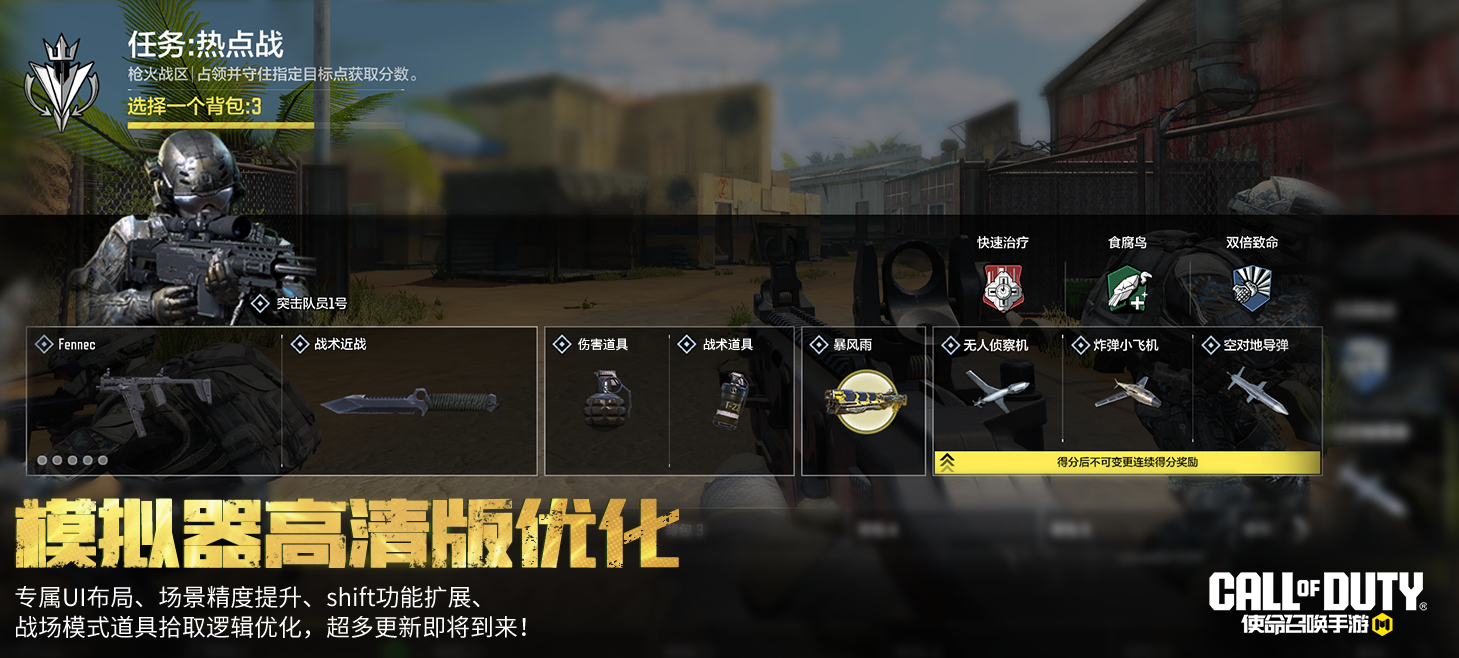 《使命召唤手游》模拟器高清版上线后,战士们提出了不少非常有效的提议。在这次新版本的更新中,我们针对战士们提出的反馈进行了优化,以提升战士们在《使命召唤手游》模拟器高清版中的体验。
