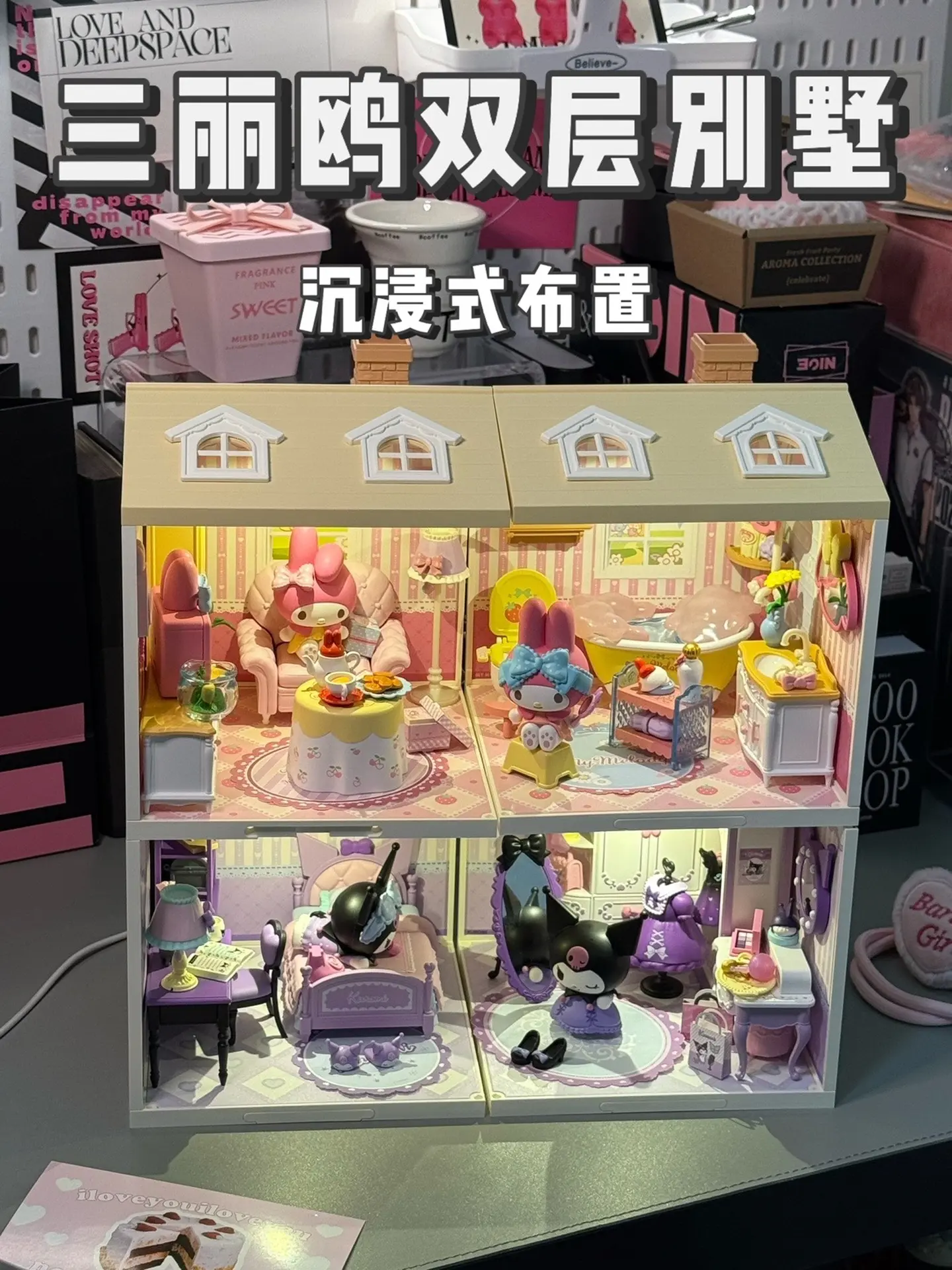 沉浸式布置三丽鸥双层别墅 #沉浸式 #三丽鸥 #大人也要玩玩具 #微缩场景 #过家家玩具