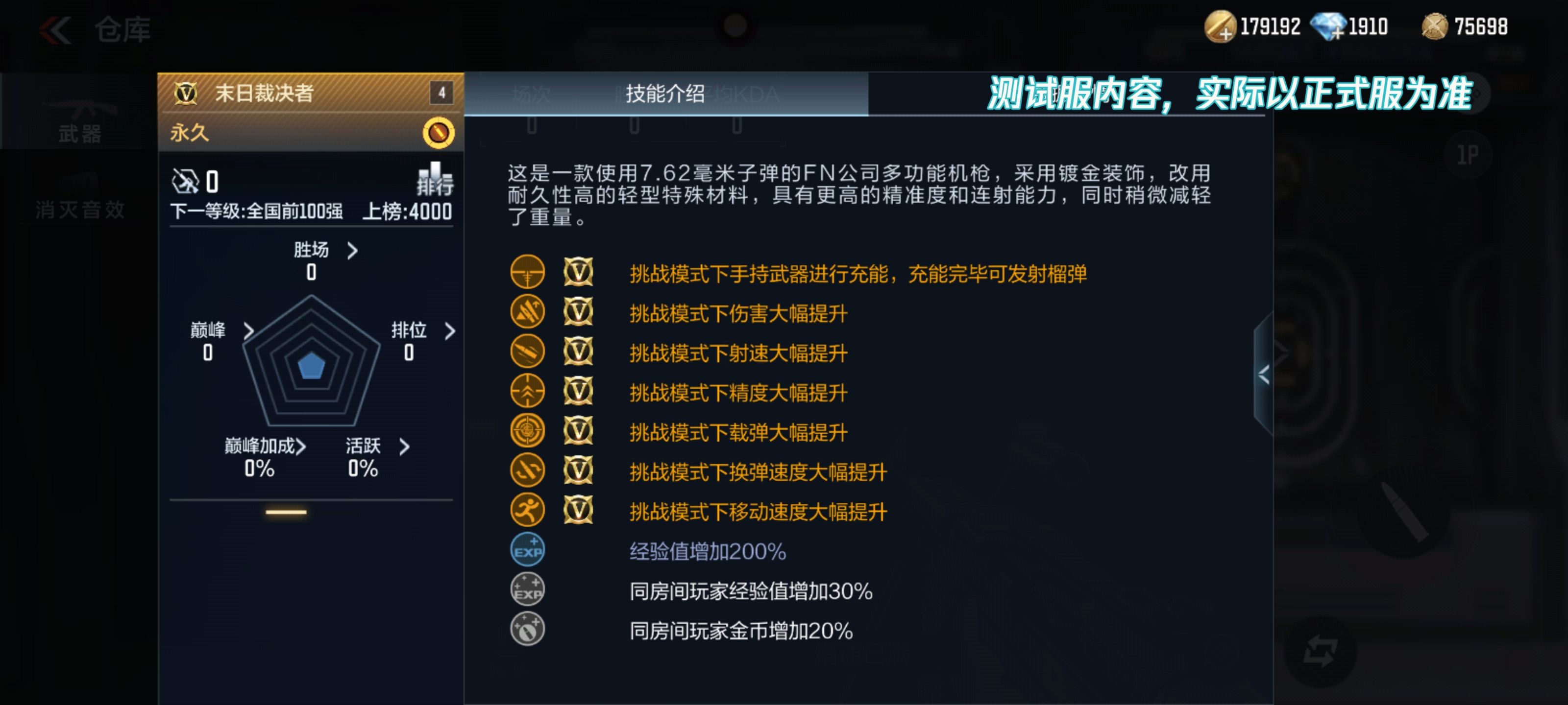 末日裁决者在挑战模式下的伤害、射速均得到大幅提升,经简单测试,末日裁决者在挑战中的射速约达到672发/分,相比竞技590发/分射速提升显著,这强化了PVE模式对单个小怪、集群小怪以及最终BOSS的输出能力,让战士们在挑战中横扫强敌。