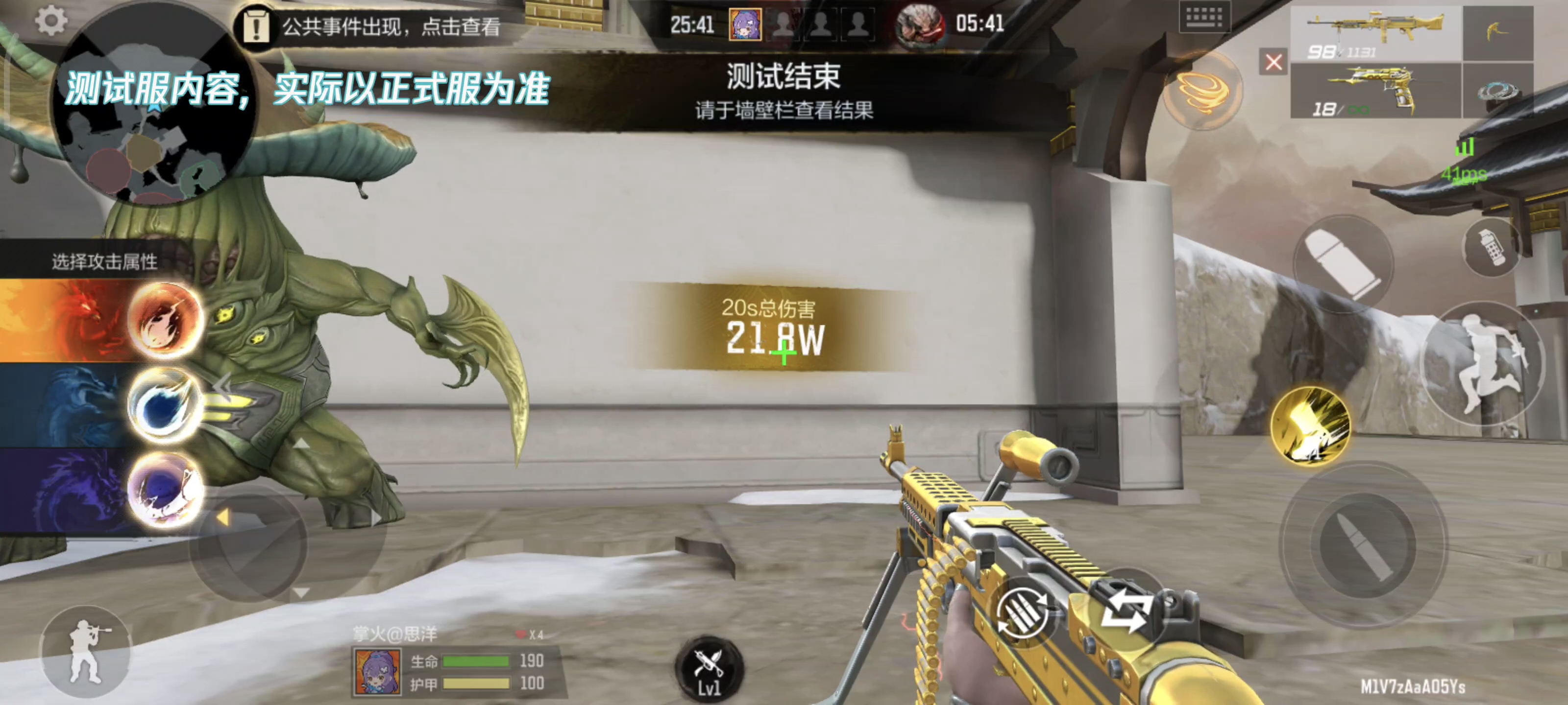 基础攻击力为1级且不携带任何饰品的情况下,我们前往云海天宫观星台,找到视肉沙包进行20秒伤害测试。最终结果为21.8万,可与SPAS12-变形金刚·擎天柱、AN94-超新星的重型武器形态相媲美,远高于其他挑战强化型机枪,不愧是机枪届挑战新星!