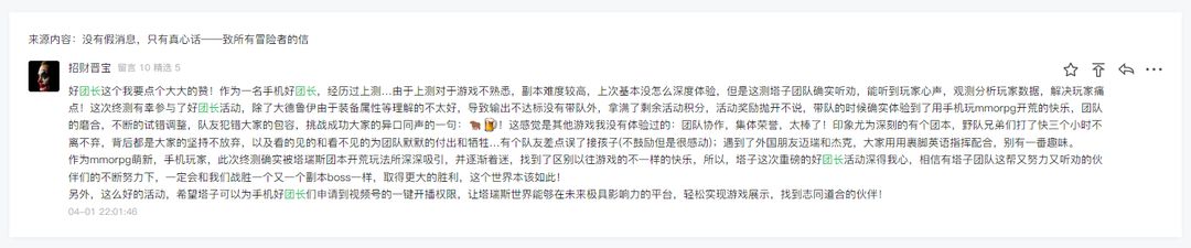 团长的激励活动在终测中确实给了一部分玩家有效的团队体验提升,我们也发现了一些问题,即将在公测的1000w奖金活动中进行修改。