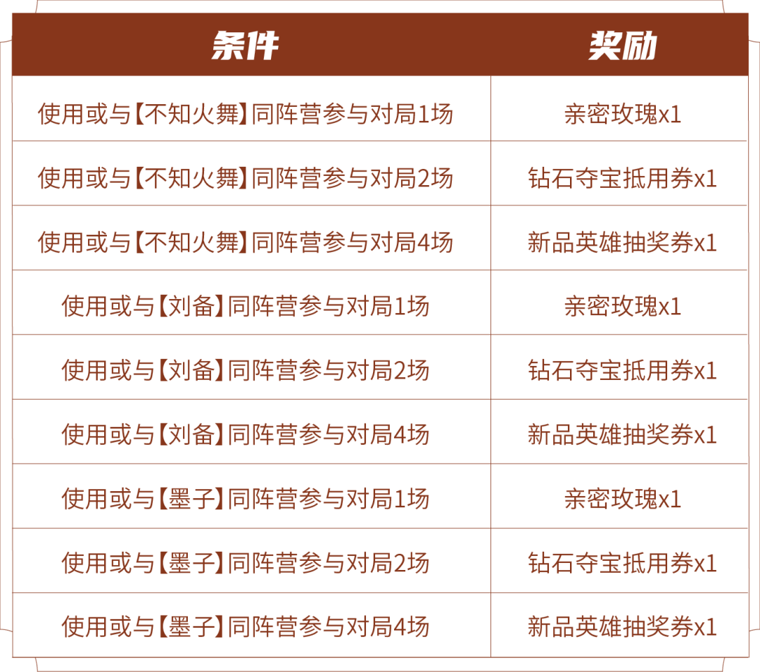 活动期间与指定英雄同阵营参与对局送亲密度道具等好礼!
