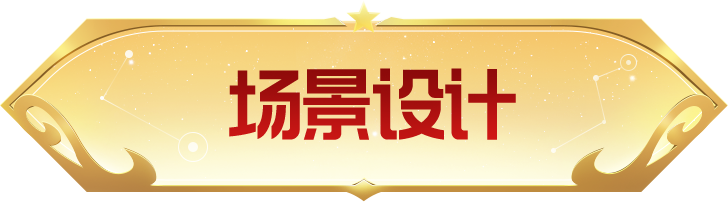 按原作十二星宫的设计语言进行创作,使用天蝎座的图形符号并结合古希腊的建筑风格,融合设计场景建筑,以宏大神秘的宇宙作为背景与主题相呼应。