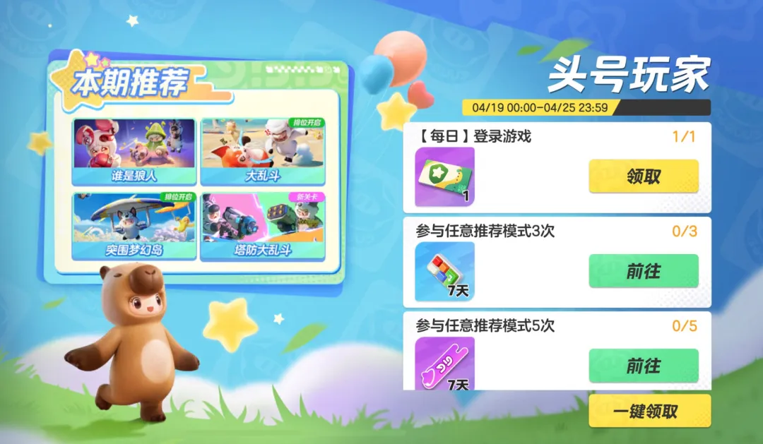 游玩推荐模式,完成任务