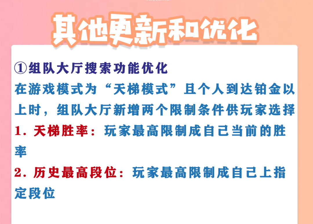 在游戏模式为“天梯模式”且个人到达铂金以上时,组队大厅新增两个限制条件供玩家选择