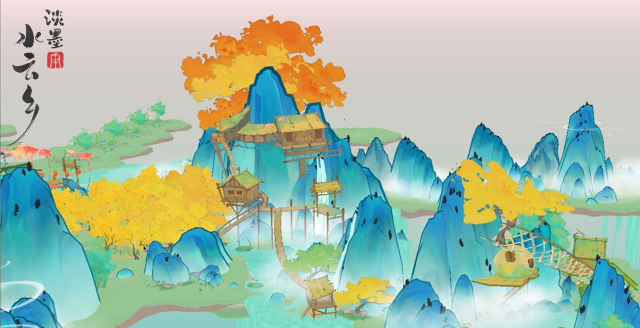 在水云乡的巴蜀地图中,我们凝聚了川渝当地民居的特色,设计了山间云栈。这里的民居与平原地区的建筑不同,结构轻巧,且极致地利用了非常局促的山间缝隙。