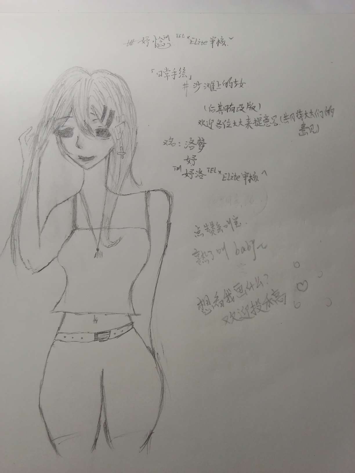 #『日常手绘·沙滩上的少女』“一个少女在沙滩上,享受那无与伦比的乐趣” #Elite @沈兮@沈笙